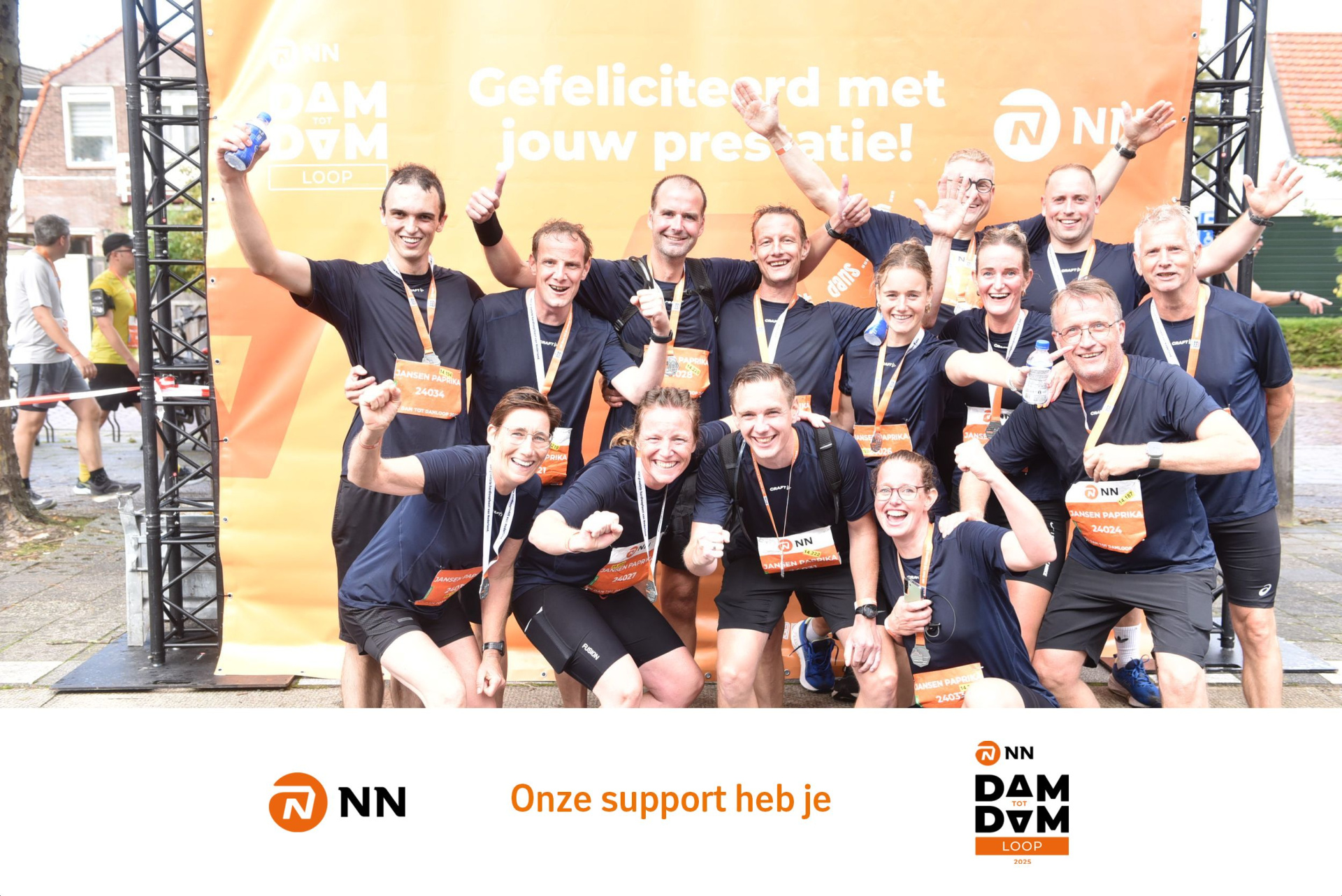 Gisteren na een goed ontbijt heeft Jansen Paprika & friends zich van zijn sportiefste kant laten zien. Met 18 fanatiekelingen gehuld in je shirtje van de sponsor was de Dam tot Damloop weer een groot succes. Na de inspanning was er natuurlijk wat te drinken om al het vocht weer aan te vullen.